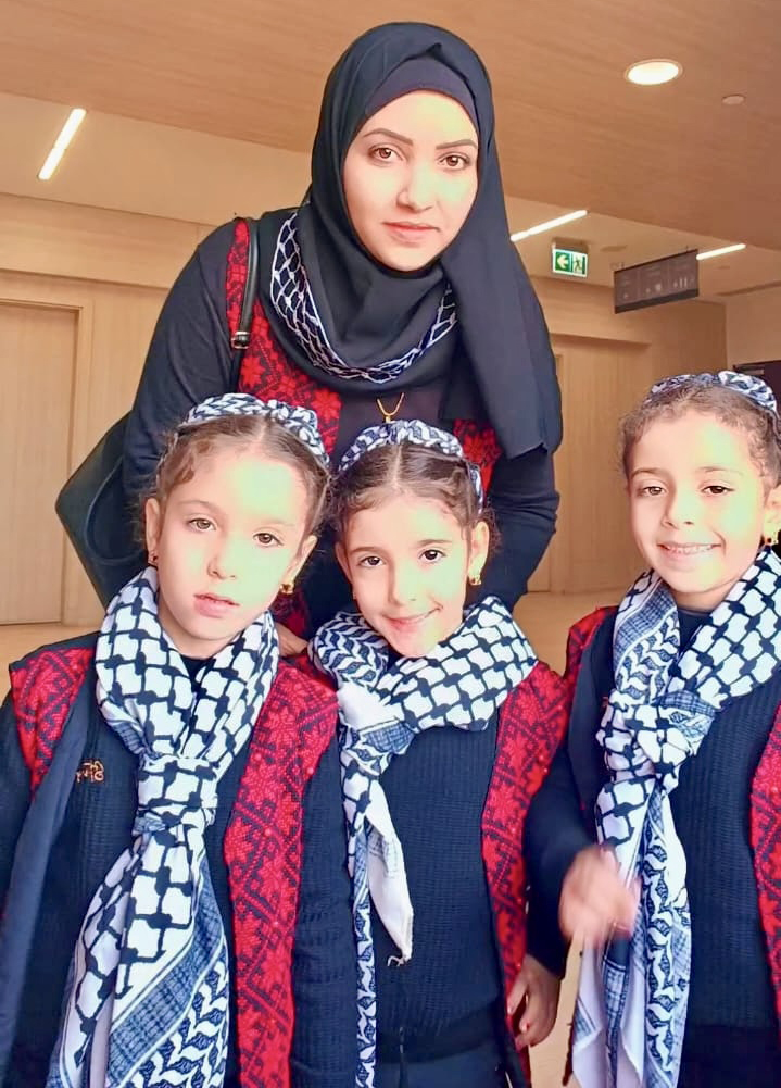 Meet Fayza Youssef, a remarkable artist and mother of triplet daughters – Mira, Miral, and Miriam from Beit Lahia, Palestine. Following a medical evacuation to Cairo after losing her husband, Dr. Hassan Al-Radee, a renowned Author of Economic Affairs, Fayza has found a new canvas for healing through art. Her artistic journey began early, winning her first competition at the tender age of three. Though life took its turns, she rediscovered her passion during her third year at Al-Azhar University, blossoming as a self-taught artist. Fayza’s creative spirit has clearly been inherited by her daughters displaying a natural talent for painting from just two and a half years old.